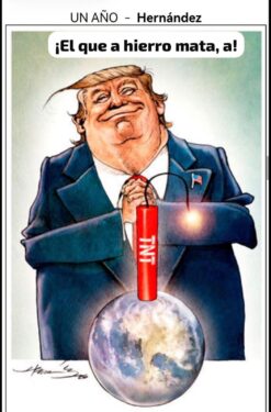 ¡El Monstruo de la Casa Blanca y su primer año, rumbo a un Holocausto Hitleriano Mundial ajá!. Enloquecido por el Poder igual que AMLO, llegó a cobrar venganzas con un altísimo afán destructivo. ¡E iguales bélicos riesgos, de morir en el intento recontraajá!